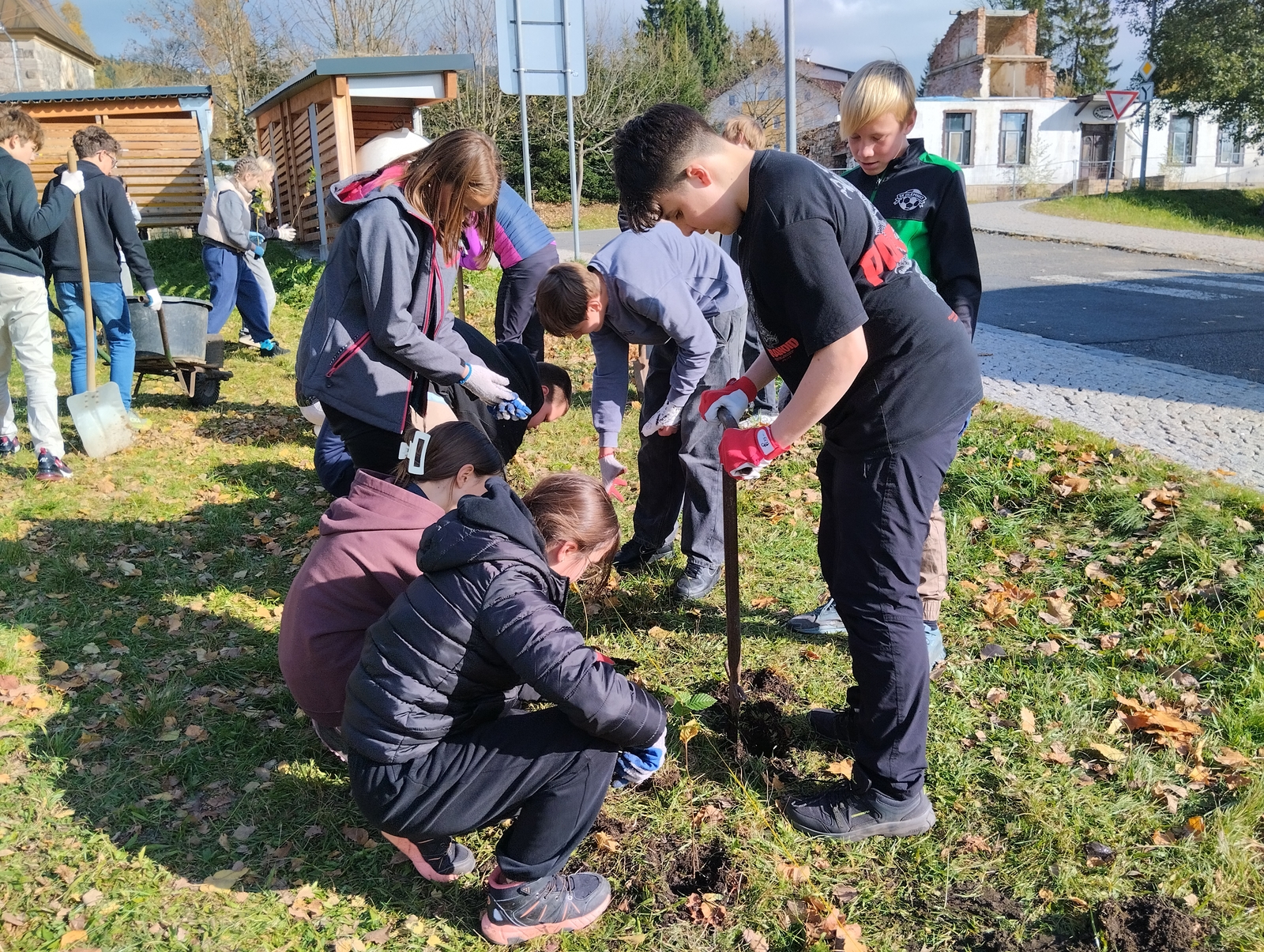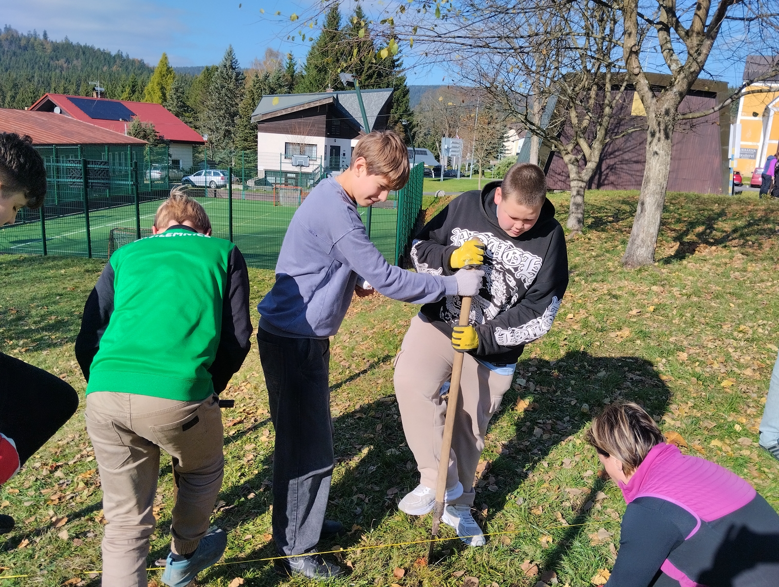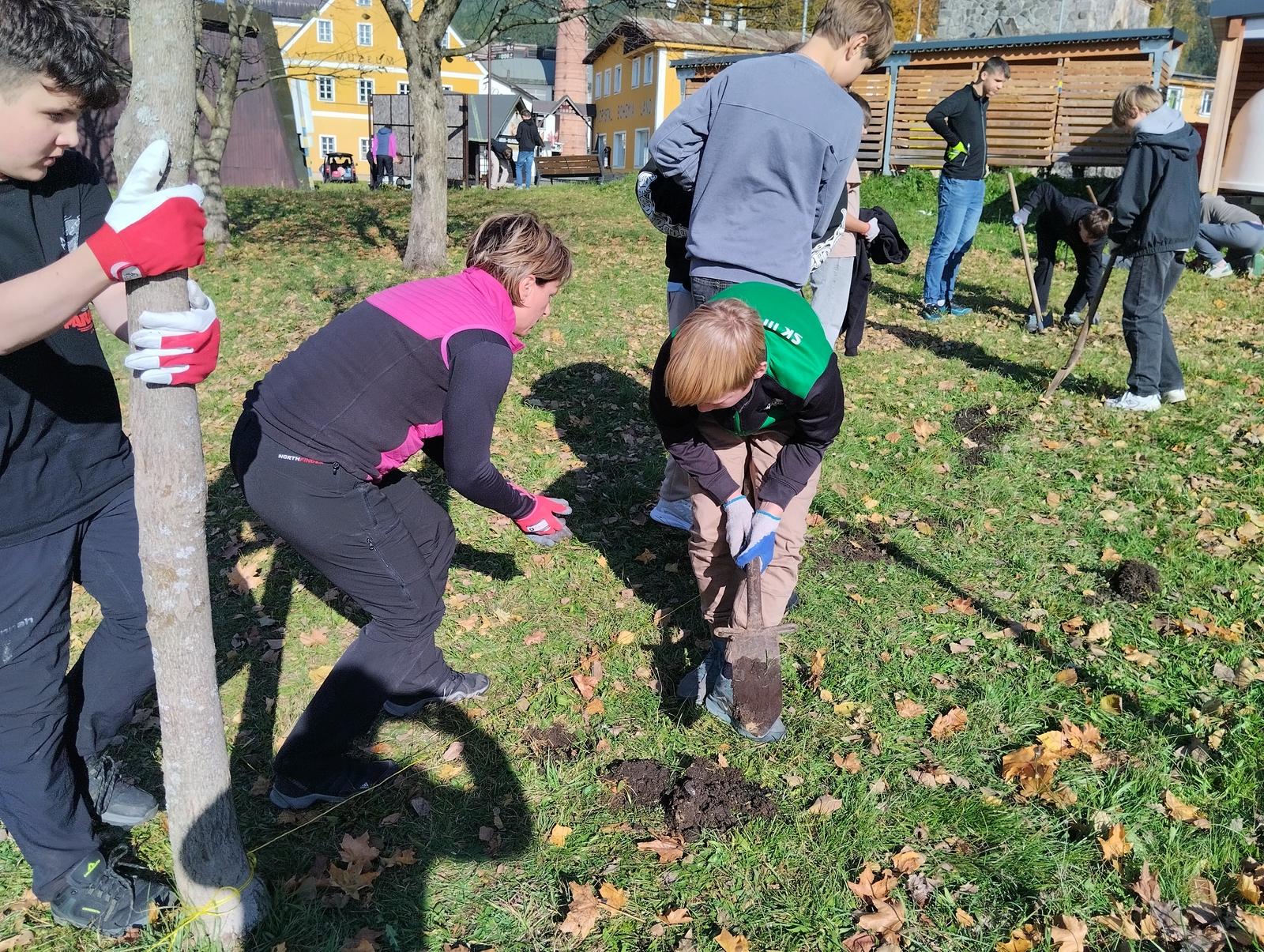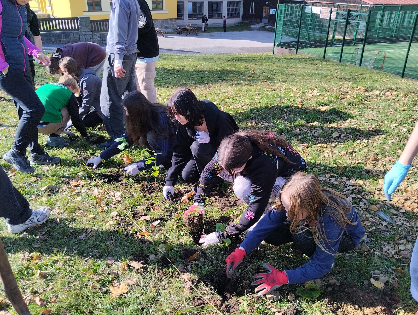 Sázení stromků na pozemku školy