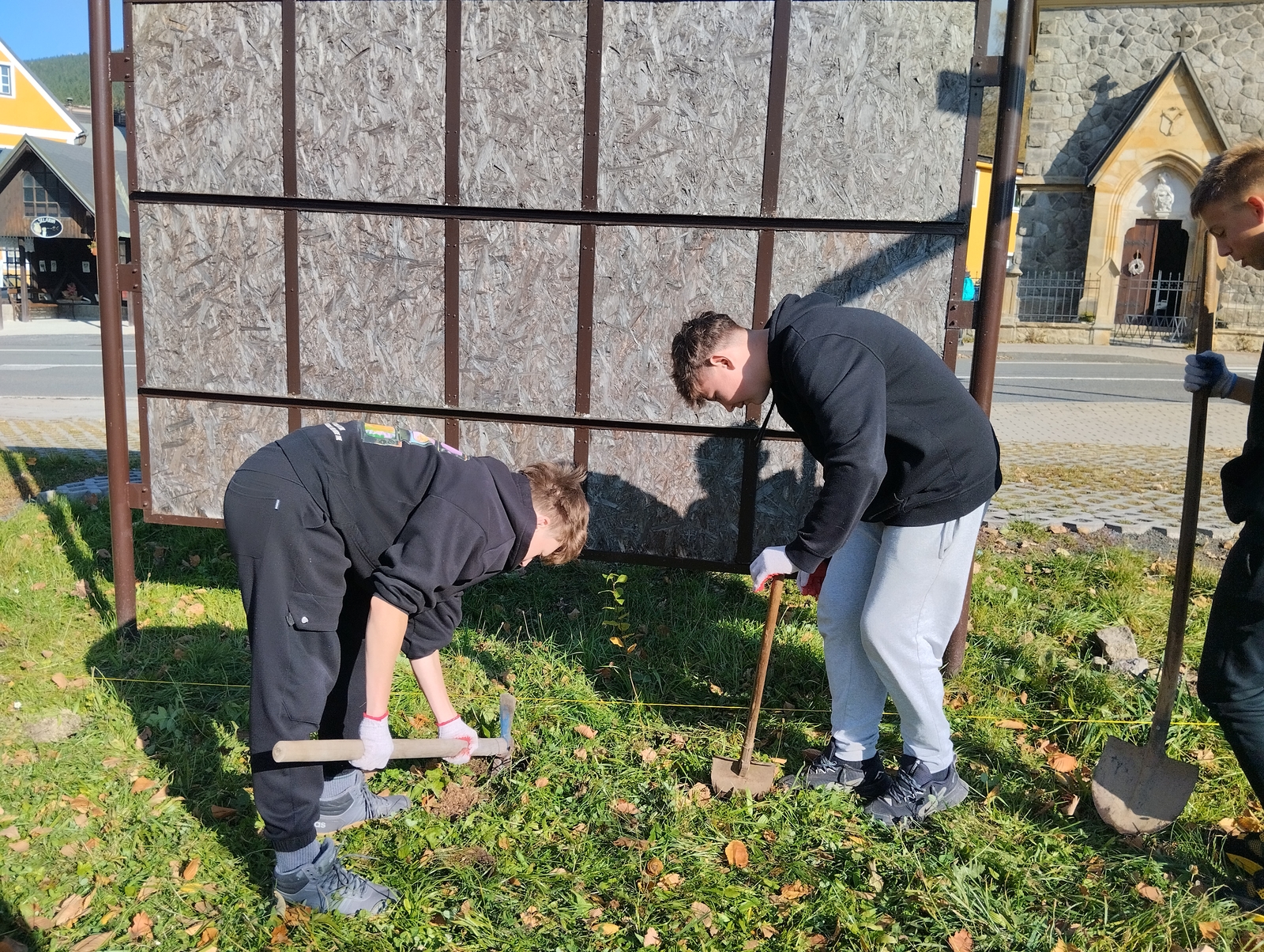 Jedno čtvrteční podzimní odpoledne jsme vyměnili propisky a tužky za rýče, lopaty a hrábě, školní lavice za venkovní pozemek školy a za slunečného počasí jsme společnými silami žáků prvního i druhého stupně vysázeli živý plot z habrových sazenic. Tento plot by měl ohraničit pozemek školy a oddělit ho od okolních cest a silnic. Doufáme, že nám sazeničky hezky porostou a malý živý plot se na jaře zazelená.