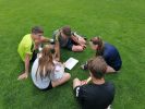 V tomto školním roce jsme se žáky 8. a 9. třídy pojali trochu jinak. Paní ředitelka připravila matematické kvízy a hádanky, paní učitelka přírodopisu zapůjčila řadu fotografií rostlinných a živočišných forem s jednoduchými úkoly a paní učitelka českého jazyka zase češtinářské lahůdky. Děti vytvořily pět skupin, v nichž v každé byl nějaký ukrajinský žák, žáci z deváté i osmé třídy a tyto skupiny vyrážely do terénu podle připravených map se stanovišti, na kterých je čekaly úkoly k plnění. Cenou pro vítěze byla flaška – jak jinak, než plná drobných čokoládek a jiných pamlsků. Prima dvě hodiny hraní si a zároveň opakovaní učiva tří předmětů bylo milým způsobem zakončení letošní výuky.